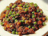 绞碎牛肉140克,洋葱泥60克,冬菇,甘笋粒各50克,青豆100克,蚝油、蒜头各20克,精盐、淀粉各5克,酱油、糖、料酒各10克,油30克。