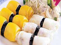 2、起锅放油烧六成热,投入海鲜卷,炸至微黄捞出控油,码盘即可。