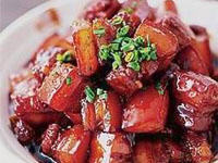 主料:带皮的五花肉(肥肉与瘦肉的比例在2:1左右为宜) 辅料:大蒜籽、干辣椒、猪油、盐、红糖、味精、料酒、蜂蜜、高汤