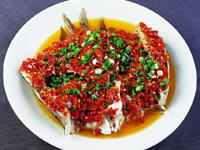 1、 上锅蒸15分钟,出锅后,将葱花撒在鱼头上,浇熟油,然后再放锅里蒸2~3分钟,即可食用。