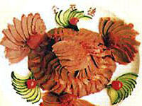 造型美观,鸭肝鲜嫩,猪肠软酥,一肴多味,富有营养。