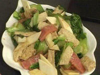 鲜油菜二斤 精盐五钱 椒油五钱 姜三片葱一钱