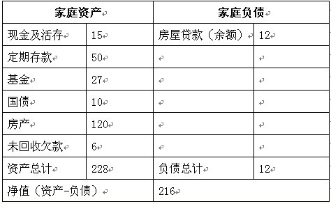 家庭资产负债状况(单位:万元)