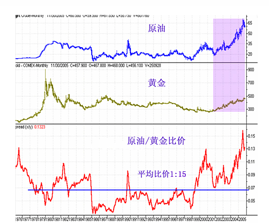 国际大宗商品市场上,原油是最为重要的大宗商品之一。原油对于黄金的意义在于,油价的上涨将推生通货膨胀,从而彰显黄金对抗通胀的价值。从历史数据上看,近30年,一盎司黄金平均可兑换15桶原油油价与金价呈80%左右的正相关关系。