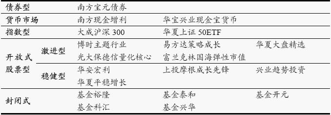 开放式基金:易方达策略、广发稳健、华夏精选、鹏华50、富国天益、兴业趋势、上投阿尔法、以及博时主题等基金。