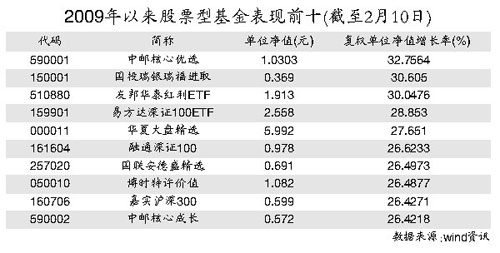 据Wind资讯统计,截至2月10日,今年业绩前十名的基金有4只是指数基金,这4只指数基金单位净值增长区间约在26.42%~30.04%。