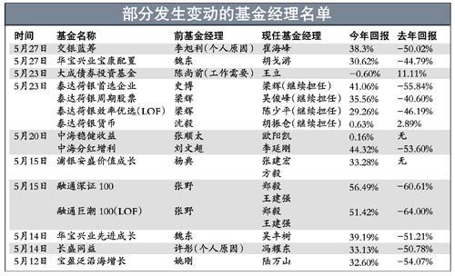 基金经理的更换公告在5月以来已经屡见不鲜。统计显示,5月共有23则基金经理变动公告,涉及14家公司,创下今年以来的最高峰。