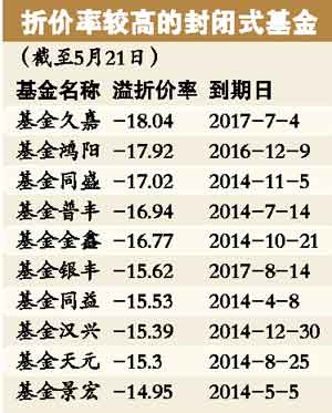 天相投顾统计显示,5月21日,26只传统封基平均折价率为12.56%,较前一周下降 0.17个百分点,创下了自2003年以来的折价率新低。