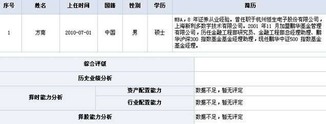 方南先生,MBA,8 年证券从业经验。曾任职于杭州恒生电子股份有限公司,上海新利多数字技术有限公司。2001 年11 月加盟鹏华基金管理有限公司,历任金融工程部研究员、金融工程部总经理助理、鹏华沪深300 指数基金基金经理助理,现任鹏华中证500 指数基金基金经理。