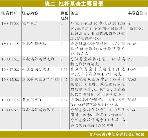 他分析称,银华锐进、国泰估值进取和国投瑞银瑞福进取目前的杠杆最高,均为2;银华锐进小规模高仓位最受市场资金的青睐;国泰估值进取仓位较低但规模仅为4.22亿份。