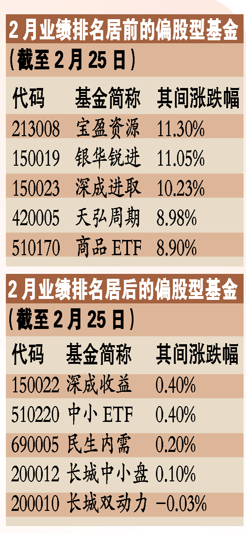 2月1日至2月25日,上证指数上涨了3.15%,据统计,其间,普通股票型基金平均获得了4.4%的净值增长率,其中,四分之三的普通股票型基金收益超过了大盘涨幅。