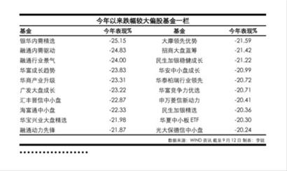 偏股基金今年无一赚钱 22只基金跌幅超过20%
