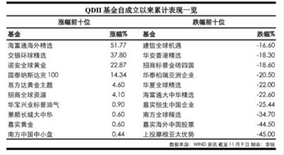 上述统计数据表明,自从成立至今,QDII基金跌幅最大高达45%。也就是说,该基金自从成立至今,已经处于几乎被“腰斩”地步。而在为数不多的飘红基金中,QDII基金累计涨幅最大超过50%。这样算下来,尽管同是QDII基金,但从成立至今的业绩首尾差距接近100%,这样的差距确实惊人。
