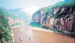 夔门,在瞿塘峡入口处是长江三峡的西大门,又名“瞿塘关”,在巍峨壮丽的白帝城下,是出入四川盆地的门户。从白帝城向东,便进入长江三峡中最西面的瞿塘峡,全长约8公里,在三峡中最短,却最为雄伟险峻。杜甫诗云:“白帝高为三峡镇,瞿塘险过百牢关。”
