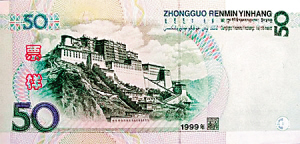 为了制作第五套人民币50元券的布达拉宫,上海印钞造币厂的两位高级美工来到拉萨考察。他们寻找很久,最终在一个水厂的厂房顶上找到“最佳角度”。他们先在这里拍照片、画素描图,经过反复修改和雕琢,最终设计出人民币上的图案。